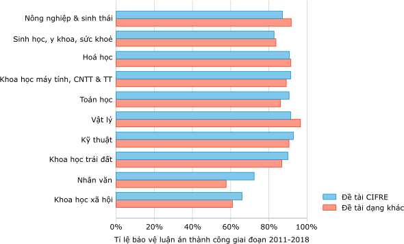 So sánh tỷ lệ bảo vệ luận án thành công giai đoạn 2011-2018 của đề tài CIFRE và các đề tài dạng khác 5.